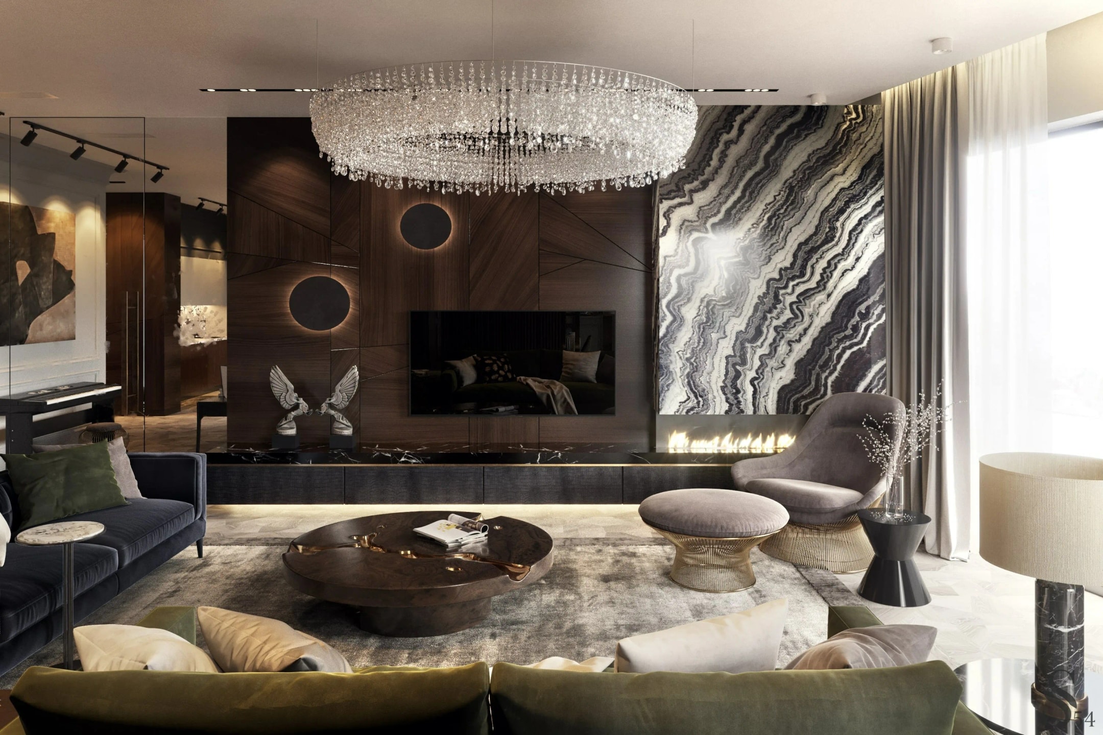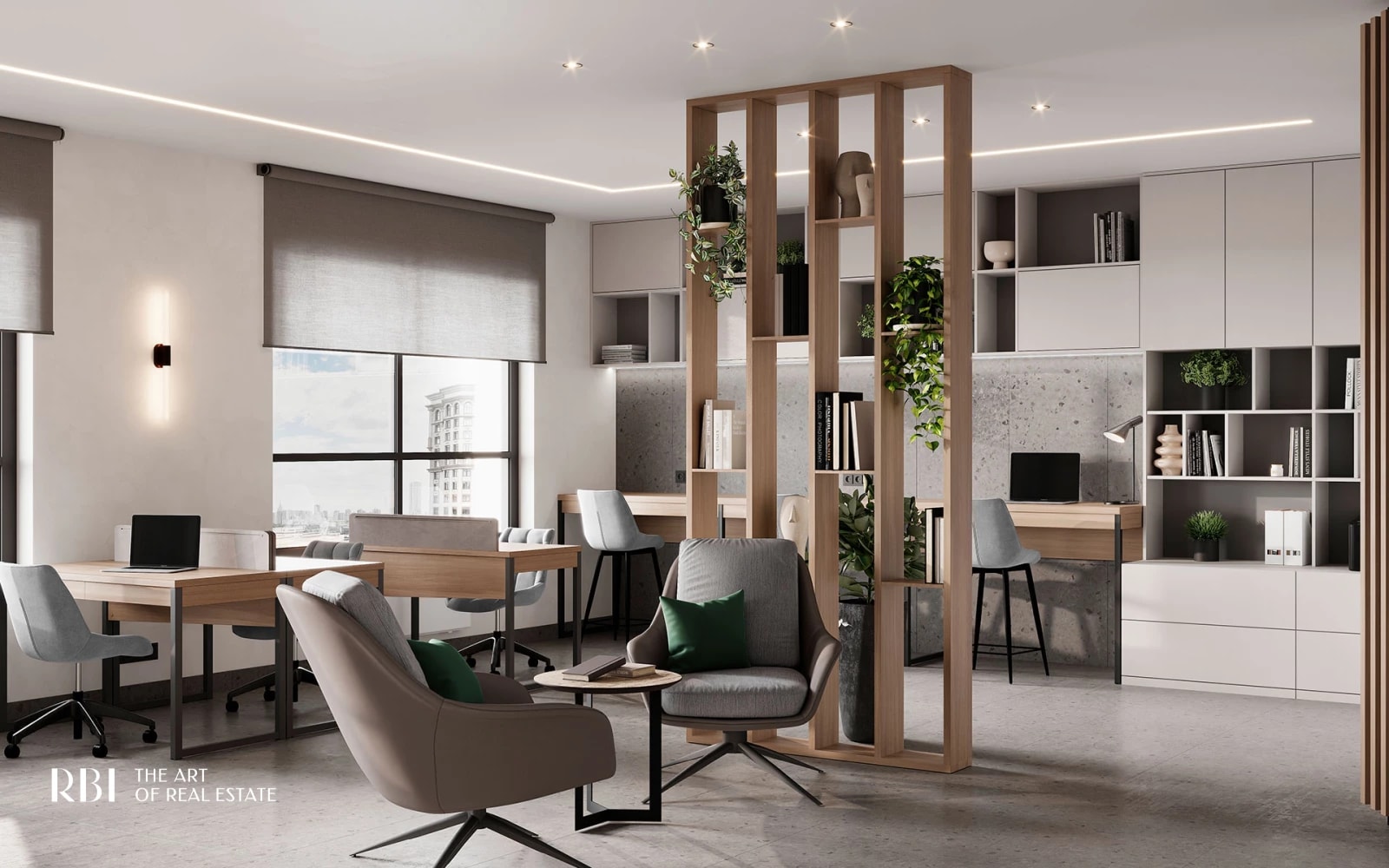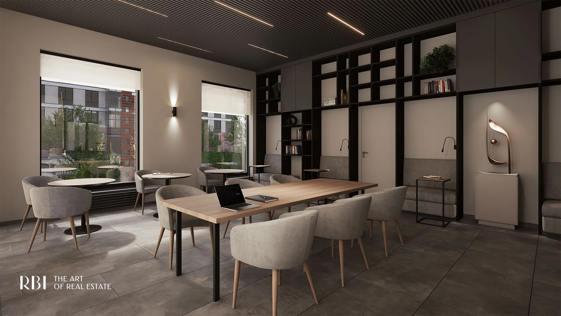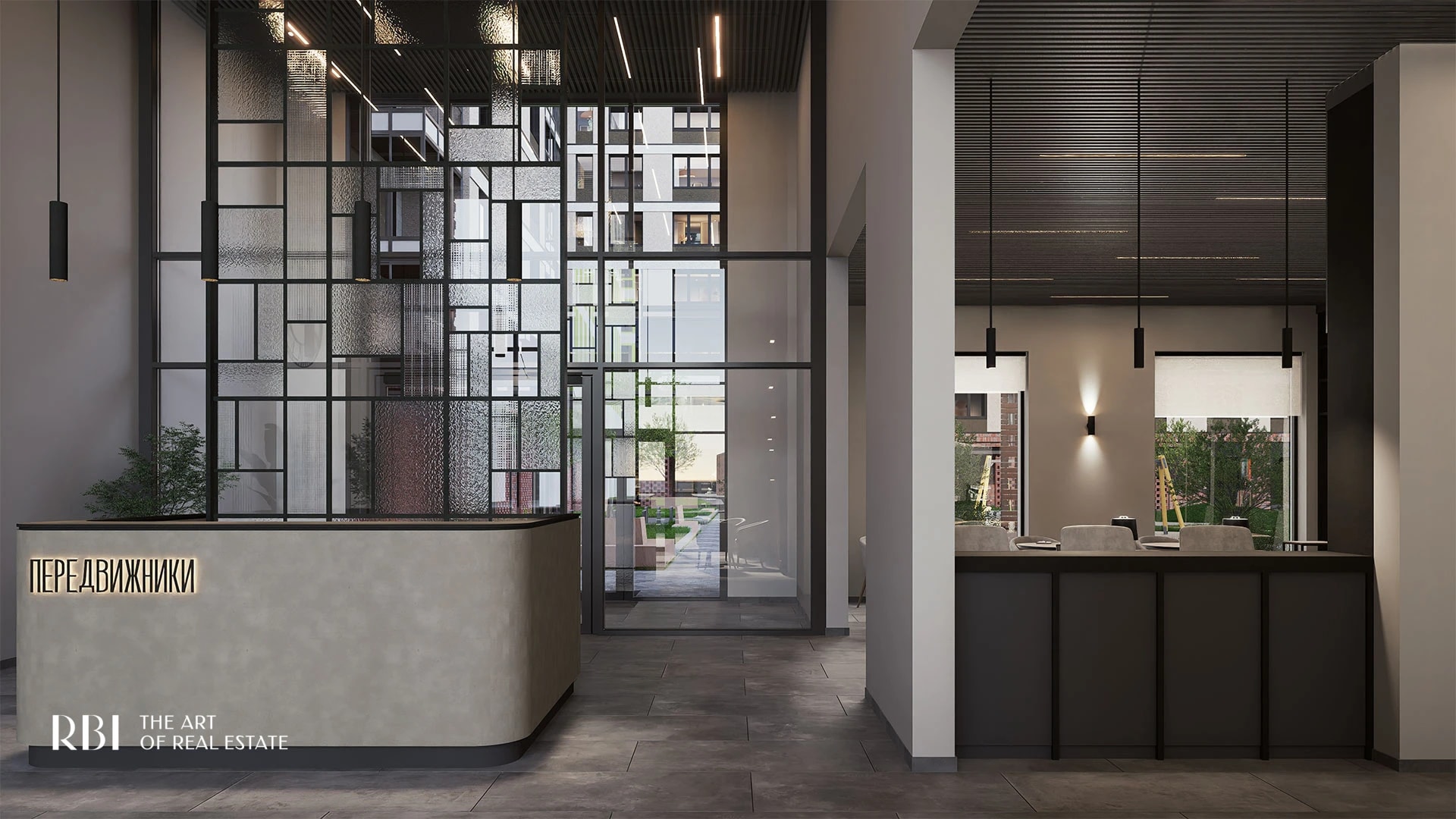 Лобби — это не просто входная группа, а современная светлая гостиная, которая задаёт эмоциональный тон всему дому. Панорамные витражи наполняют пространство естественным светом, создавая ощущение воздушности и простора. Дизайн подчёркивает тематику движения: линейные светильники, напоминающие рельсы, и фактурная кирпичная кладка продолжают мотив индустриального прошлого и архитектурную тему фасадов.