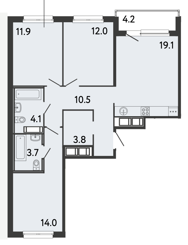 Пять секций с разновысотной этажности образуют камерный дом с подземным паркингом, муниципальным детским садом и квартирами площадь от 27 до 86 м². Рядом находится метро «Балтийская» и Екатерингофский парк.